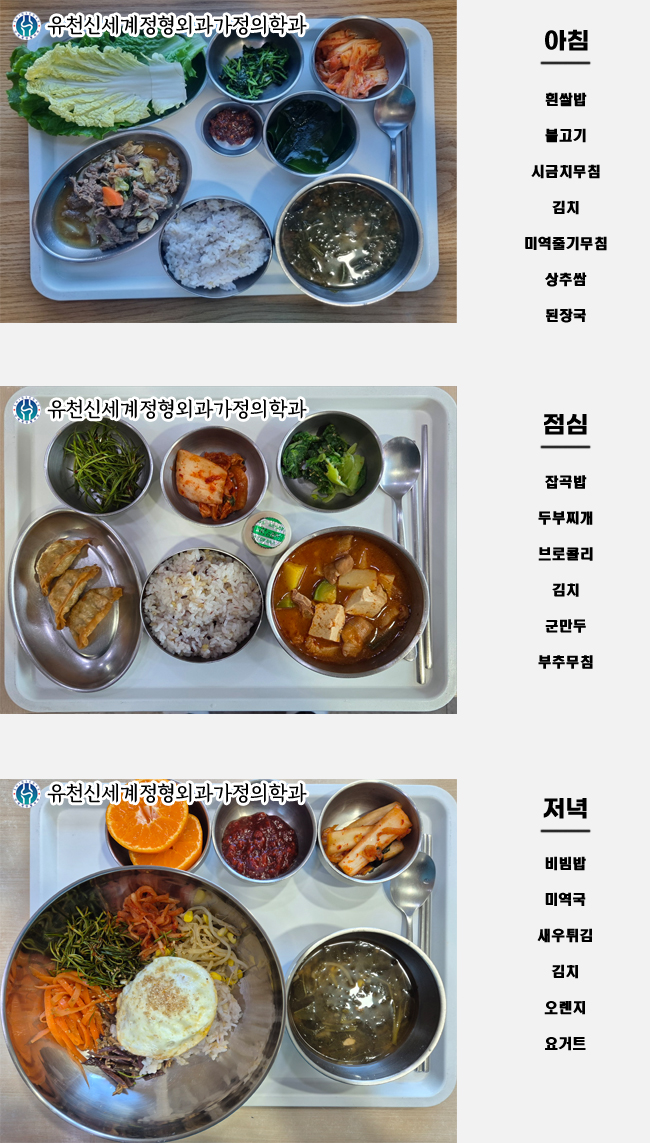 12월 맛있는 식단 세 번째! 페이지 정보 작성자 유천신세계 작성일25-12-26 12:28 조회112회 댓글0건 관련링크 이전글 다음글 목록 본문 안녕하세요.유천신세계입니다. ⠀12월의 끝자락을 향해 가며겨울의 기운이 한층 깊어지는 요즘,차가운 하루 속에서따뜻한 식사가 주는 위로가더욱 소중하게 느껴지는 시기입니다. ⠀이번 12월 세 번째 식단은연말로 향하는 계절의 흐름에 맞춰몸에 부담을 주지 않으면서도기운을 차분히 채워줄 수 있는든든하고 균형 잡힌 메뉴로 준비했습니다. ⠀제철 식재료의 자연스러운 맛을 살려추운 날씨로 떨어지기 쉬운체력과 컨디션을 부드럽게 보완하고,하루의 마무리를 편안하게 도와드리고자 했어요. ⠀따뜻한 국물 한 그릇으로하루의 긴장을 풀고,정성스럽게 차린 한 끼로겨울 저녁의 온기가 오래 남기를 바랍니다. ⠀차가운 계절 속에서도식탁만큼은 늘 포근하게,유천신세계가 정성으로 함께하겠습니다. 댓글목록 등록된 댓글이 없습니다. 이전글 다음글 목록