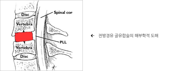 전방 접근법은 척수 감압을 통하여 목의 안정성을 획득함과 동시에 목의 통증을 완화시켜줍니다. 이러한 방법으로 모든 문제를 완전히 제거하는 것은 불가능하며 또한 이를 위하여 새로운 방법들이 계속 개발되고 있습니다. 일부 환자에게는 수술후 부종이 가라앉을 동안 호흡을 위하여 기도 삽관이 필요하고 일분에서는 기도 절개가 필요할 때도 있으나 다행스럽게도 이러한 시술이 필요한 환자들은 극히 드뭅니다.